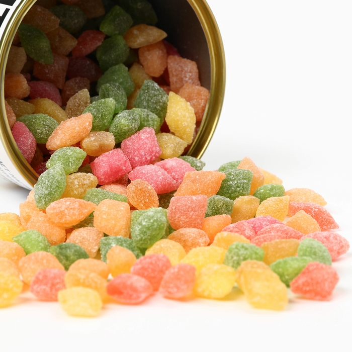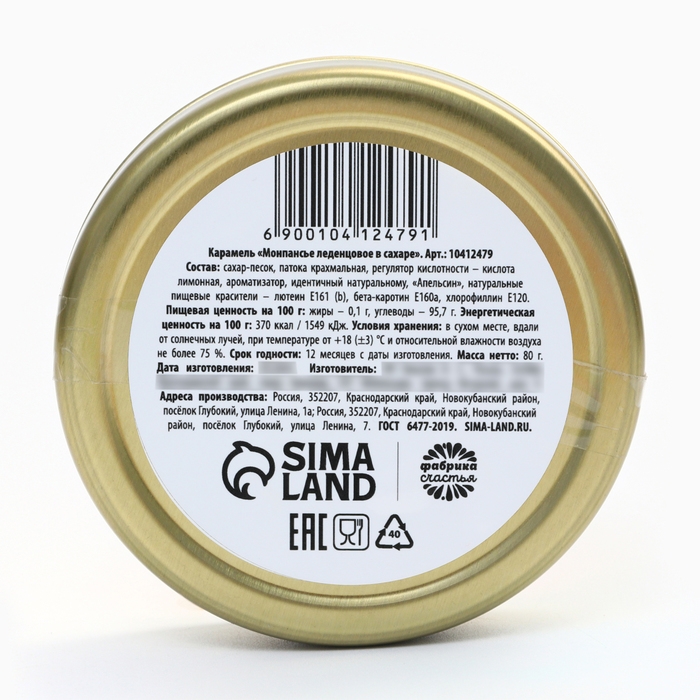 Состав: сахар-песок, патока крахмальная, регулятор кислотности – кислота лимонная, ароматизатор, идентичный натуральному, «Апельсин», натуральные пищевые красители – лютеин Е161 (b), бета-каротин Е160а, хлорофиллин Е120.