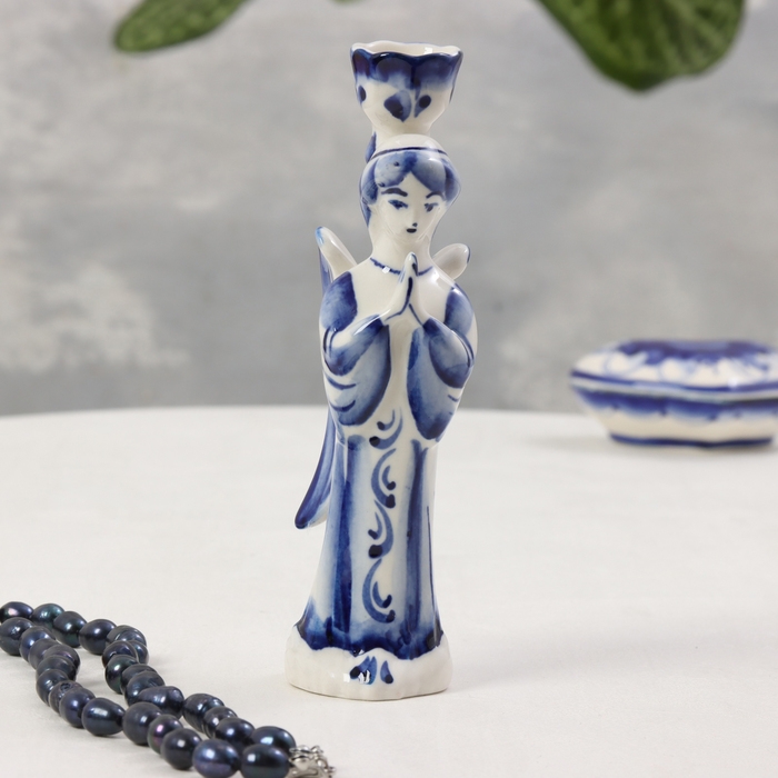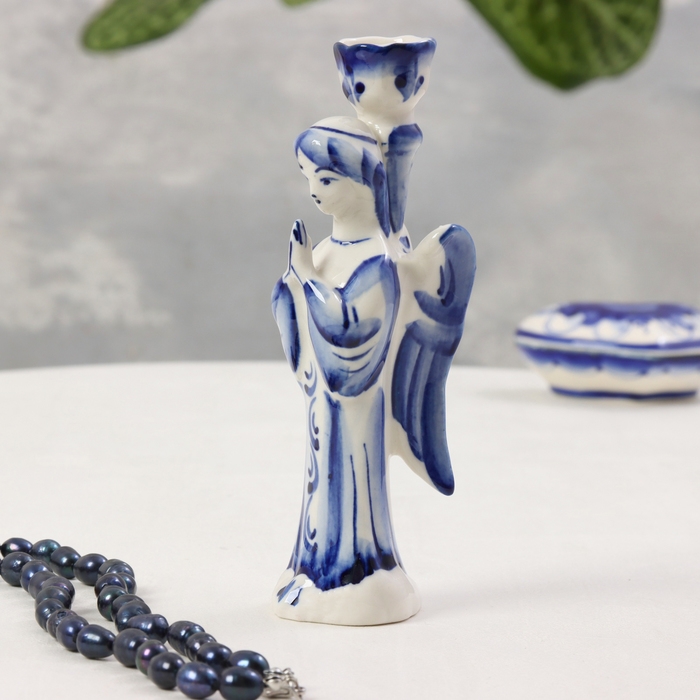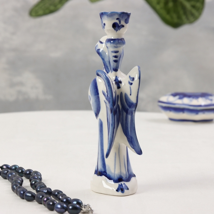 Сувенир «Ангел подсвечник», большой, 15х3,5 см, гжель