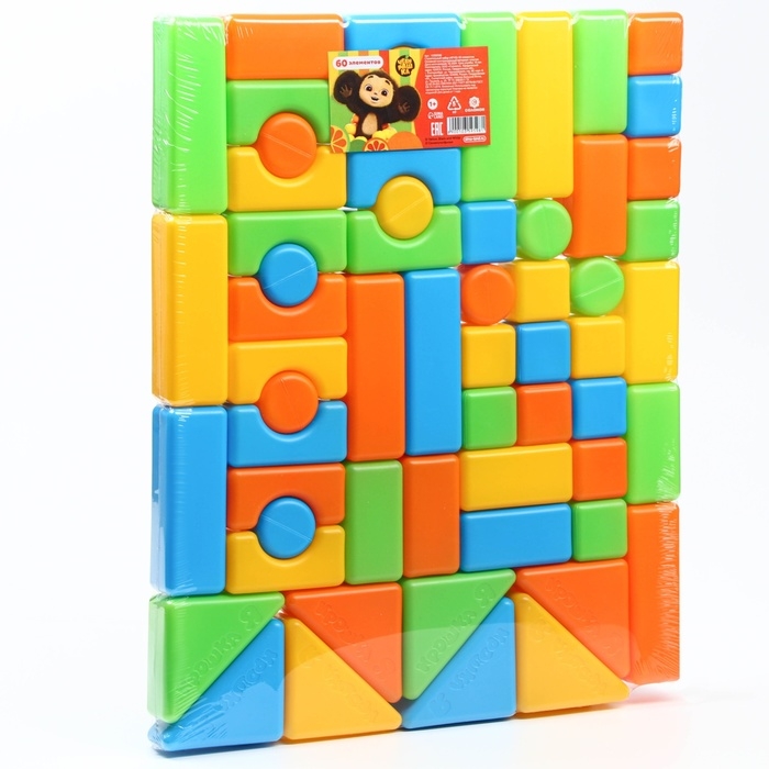 Набор цветных кубиков, "Чебурашка", 60 элементов, 4х4 см