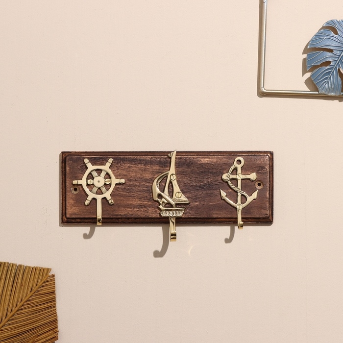 Вешалка "Морская" латунь, мдф 22 см