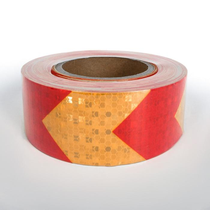 Светоотражающая лента, самоклеящаяся, желто-красная, 5 см × 25 м
