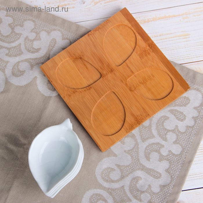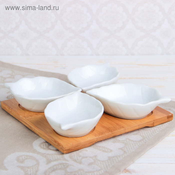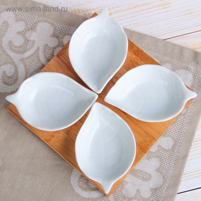 Набор салатников керамических на деревянной подставке «Эстет. Лист», 4 предмета: 50 мл, цвет белый