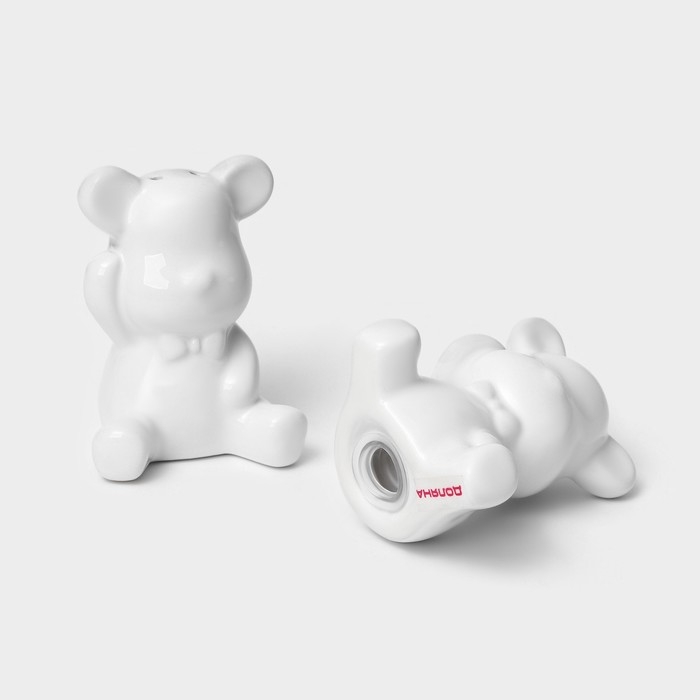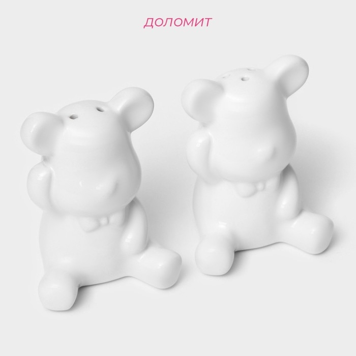 Набор для специй Доляна «Стильный мишка», 2 предмета: солонка 30 мл, перечница 30 мл, цвет белый