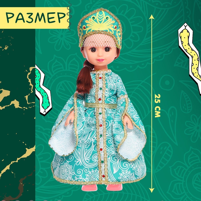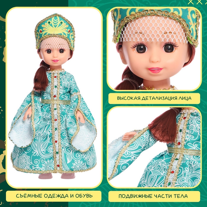 Кукла «Малахитовая царевна» в платье и кокошнике — игрушка, которая позволит вашему ребёнку окунуться в захватывающий мир русских народных сказок и традиций. Она станет идеальным компаньоном в играх и развлечениях вашего малыша.