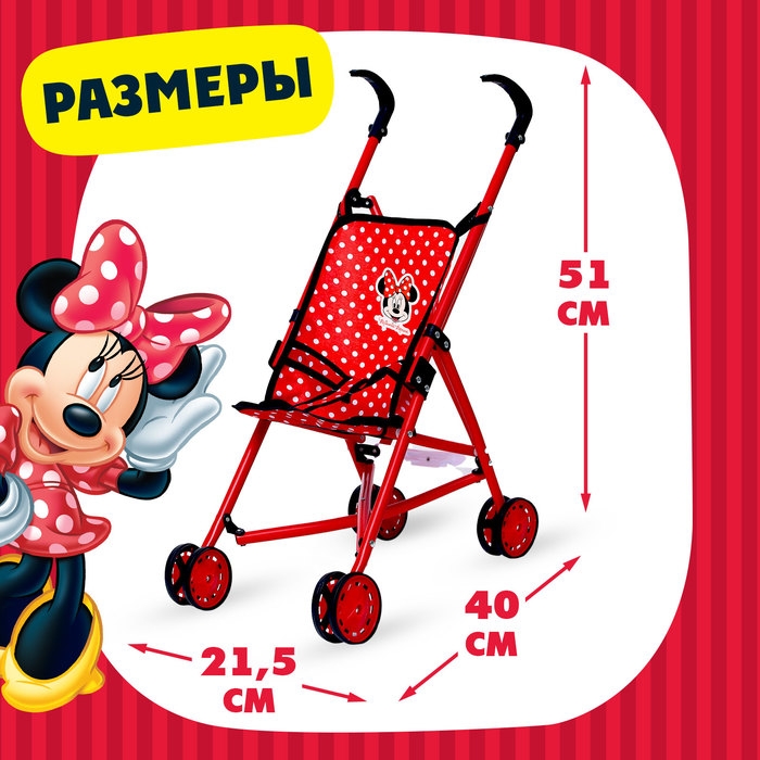 Коляска для кукол "Минни" трость, металлический каркас