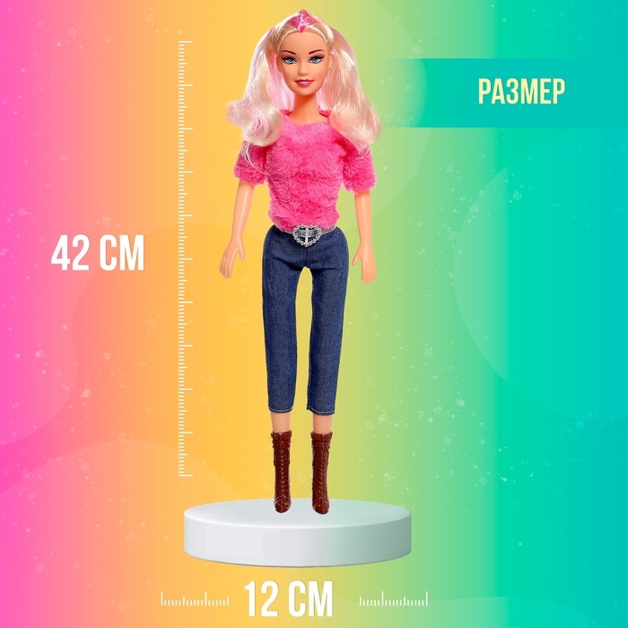 Кукла-модель «Подружка» станет замечательным подарком для детей. Она изготовлена из качественных материалов: пластика и текстиля, что гарантирует долговечность и безопасность. Высота игрушки составляет 42 см, что делает её идеальной для игр и создания модных образов.