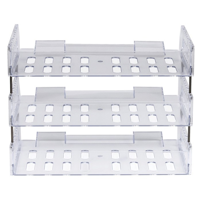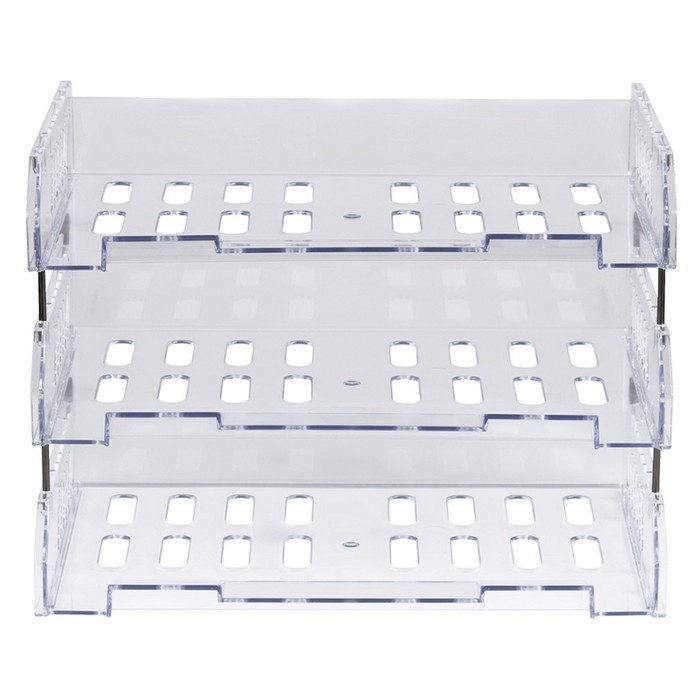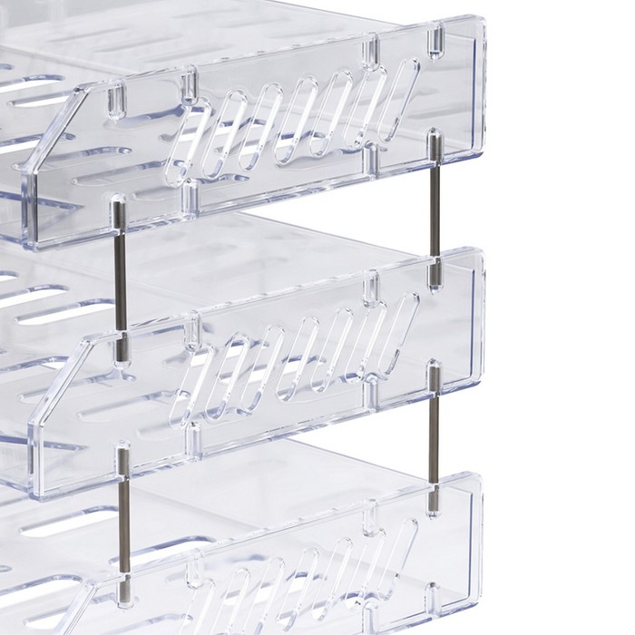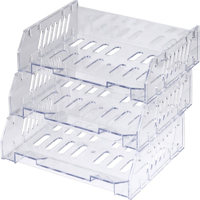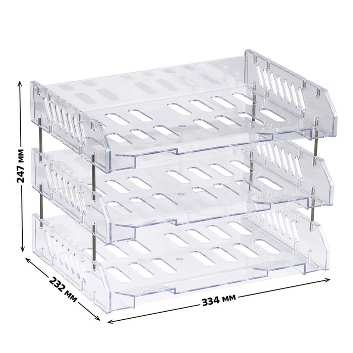 Набор лотков для бумаг горизонтальных с широкой загрузкой, "Сити", 3 шт., на металлических стержнях, прозрачный