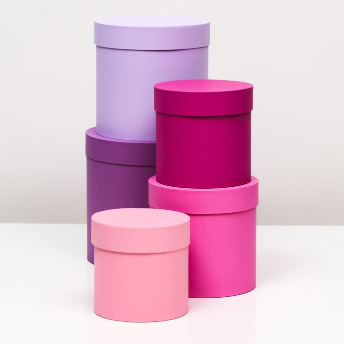 Набор шляпных коробок 5 в 1, сиреневый, 23 х 23-15 х 15 см