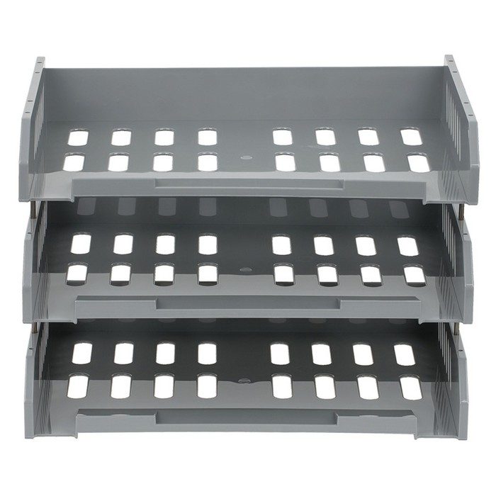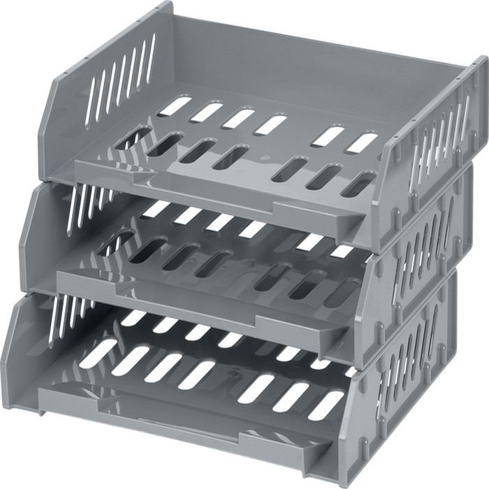Набор горизонтальных лотков для бумаг с широкой загрузкой Стамм "Сити", 3 штуки, на металлических стержнях, серый