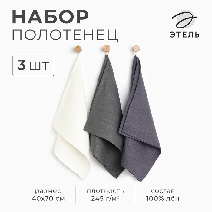 Набор полотенец кухонный Этель Fly 40х70-3шт, 100% лён