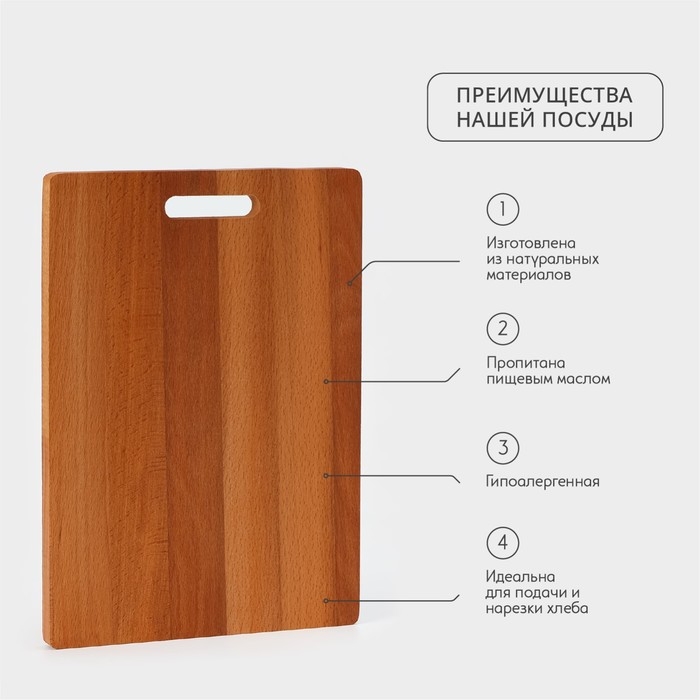 Доска разделочная Adelica «Прямоугольная», 34×23×1,6 см, с ручкой, массив бук