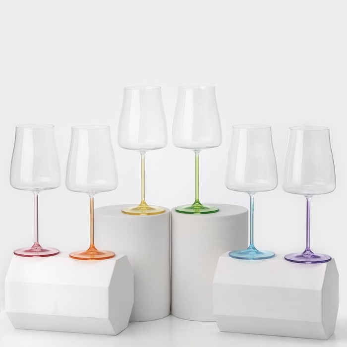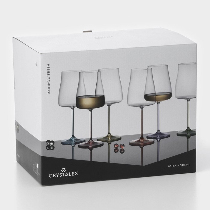 Набор стеклянных бокалов для вина RAINBOW FRESH, 600 мл, декор, 6 шт