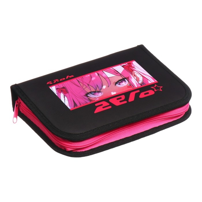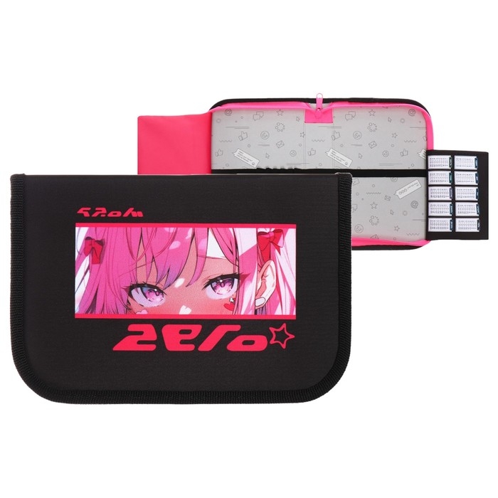Пенал 1 секция 140 х 210 х 40 мм, откидной карман и косметичка, тканевый, Calligrata TOP Content "Глаза аниме"