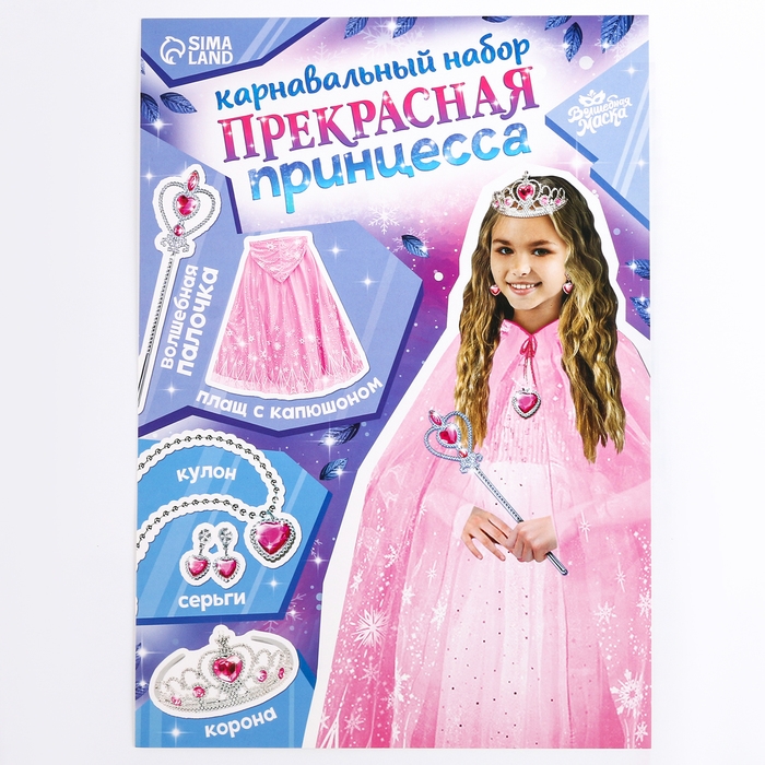 Этот карнавальный набор станет отличным выбором для детского праздника, новогоднего утренника или тематической фотосессии. Каждый элемент набора продуман до мелочей, чтобы ребенок мог почувствовать себя настоящей принцессой.