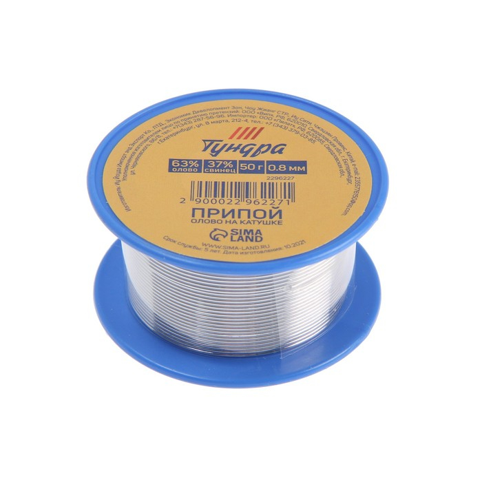 Припой ТУНДРА, ПОС 63, на катушке, 0.8 мм, 50 г
