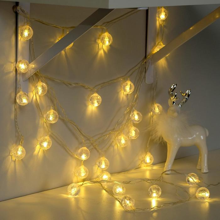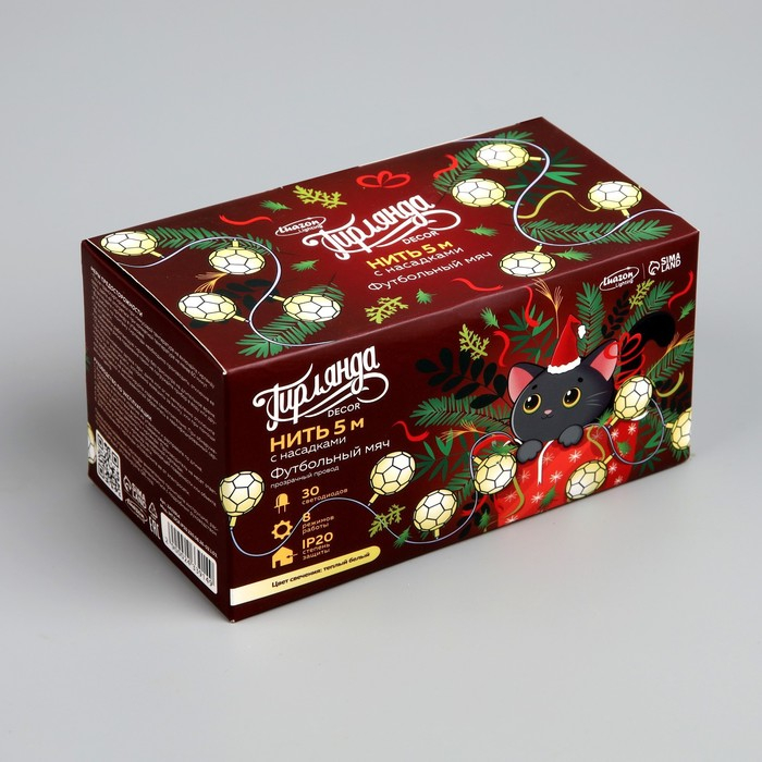 Гирлянда «Нить» 5 м с насадками «Футбольный мяч», IP20, прозрачная нить, 30 LED, свечение тёплое белое, 8 режимов, 220 В