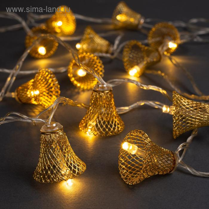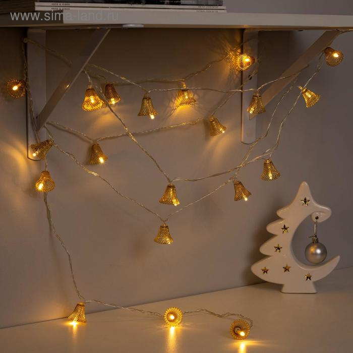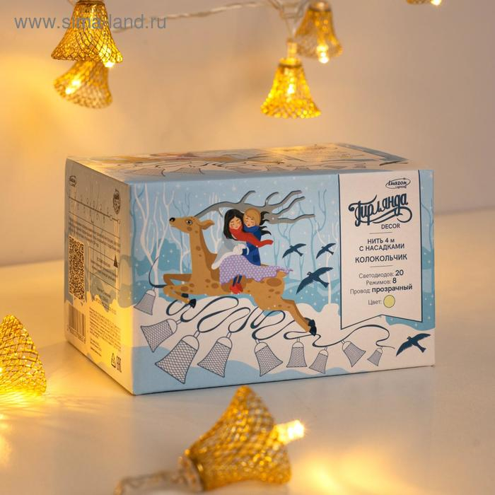 Гирлянда «Нить» 4 м с насадками «Колокольчик», IP20, прозрачная нить, 20 LED, свечение тёплое белое, 8 режимов, 220 В