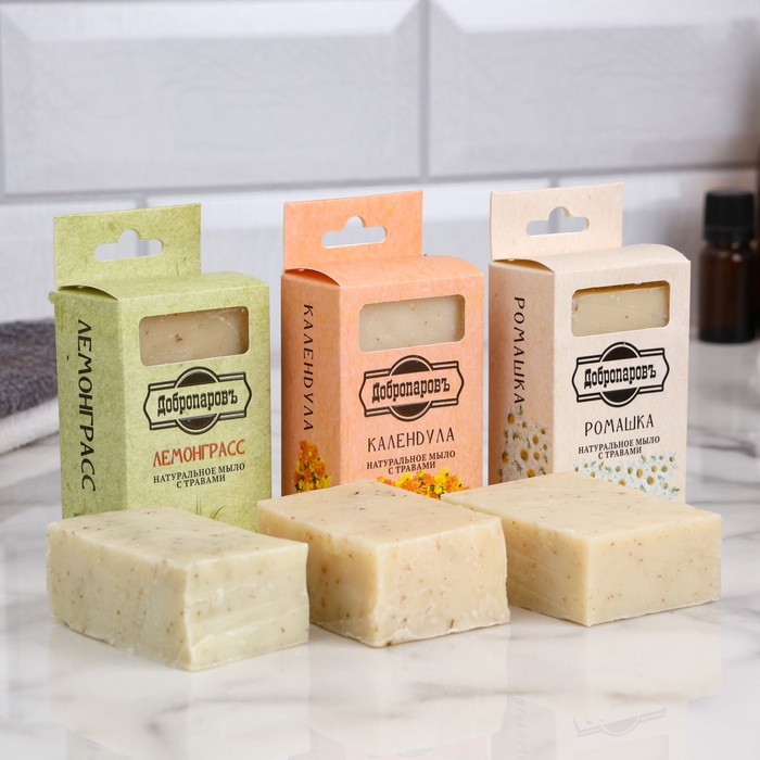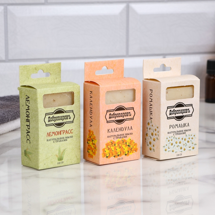 Натуральное мыло "Календула, Лемонграсс, Ромашка" набор 3 шт по 100 г Добропаровъ