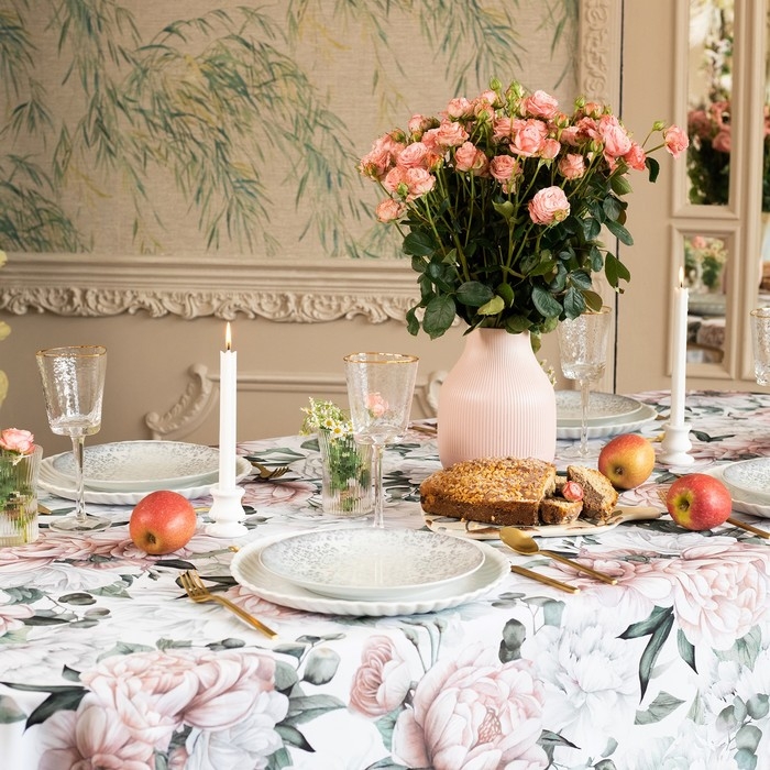 Скатерть Доляна Пионы 145*215 +/- 3 см, 100% п/э