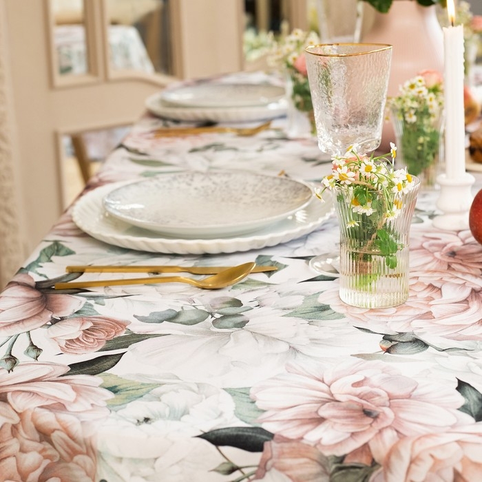 Скатерть Доляна Пионы 145*180 +/- 3 см, 100% п/э