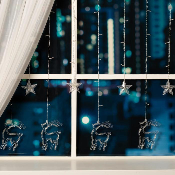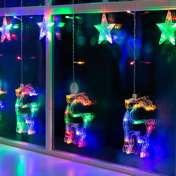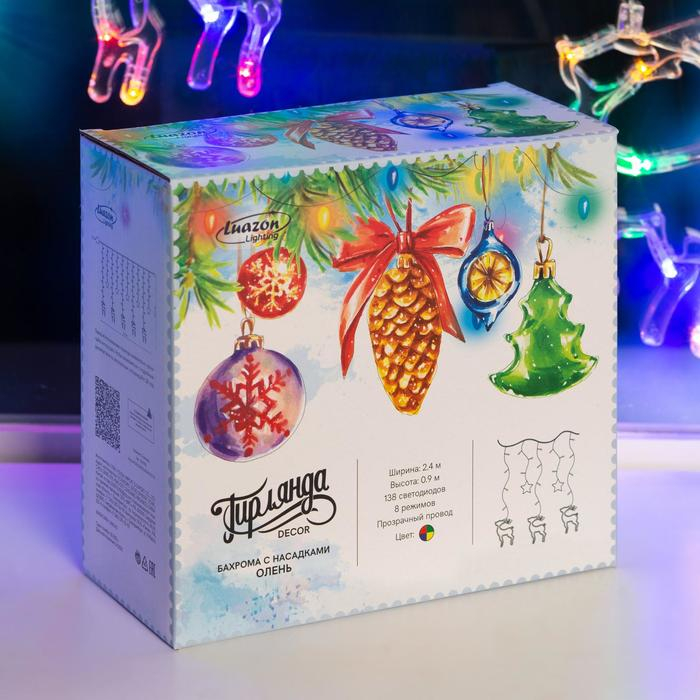 Гирлянда «Бахрома» 2.4 × 0.9 м с насадками «Олень», IP20, прозрачная нить, 138 LED, свечение мульти, 8 режимов, 220 В