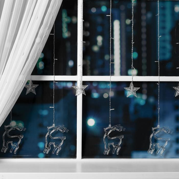 Гирлянда «Бахрома» 2.4 × 0.9 м с насадками «Олень», IP20, прозрачная нить, 138 LED, свечение тёплое белое, 8 режимов, 220 В