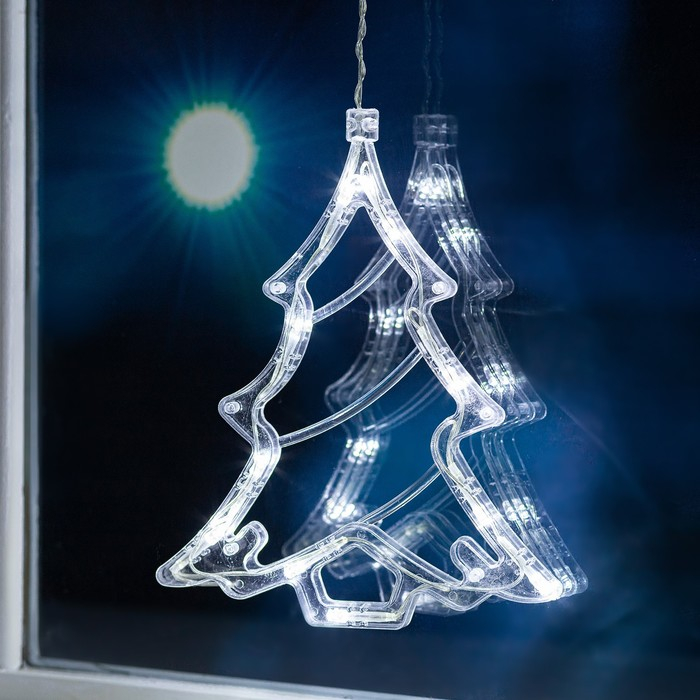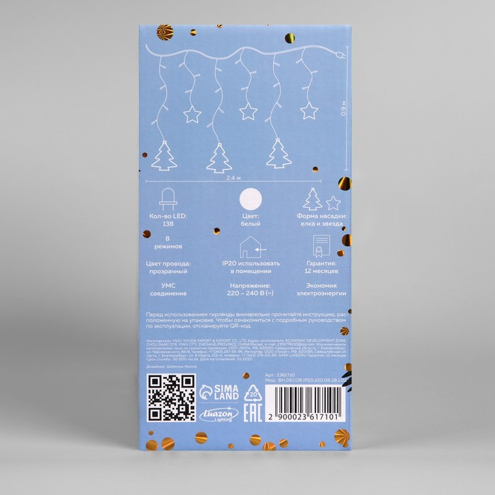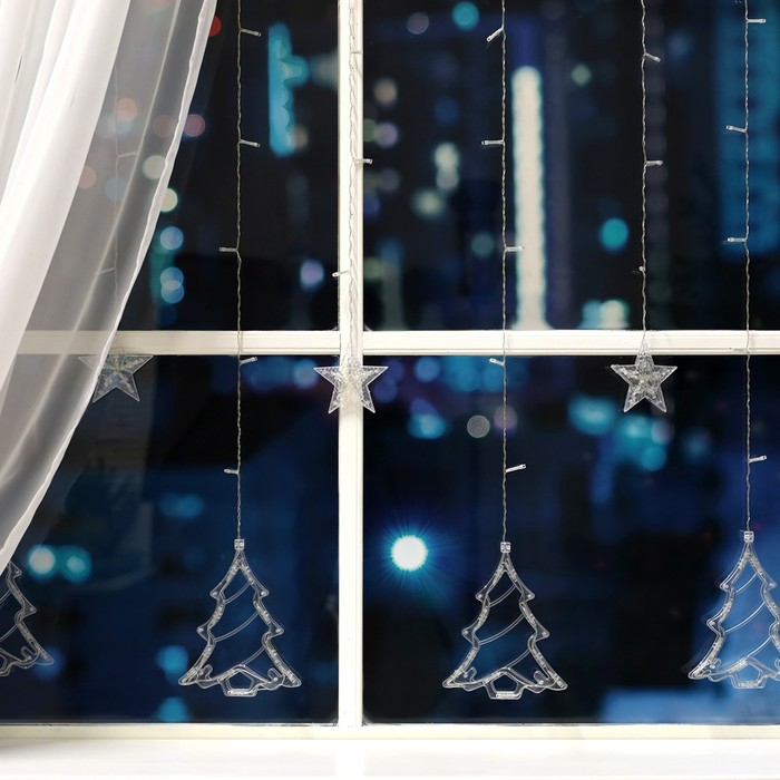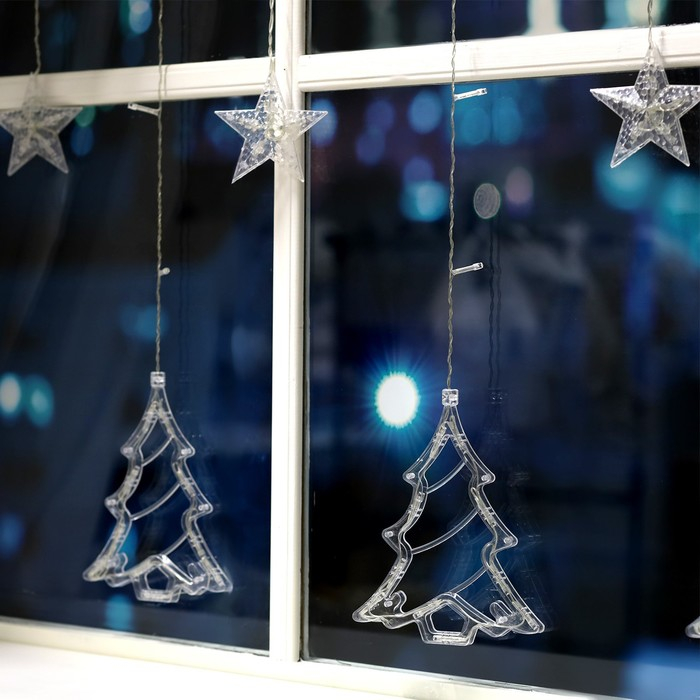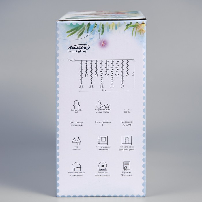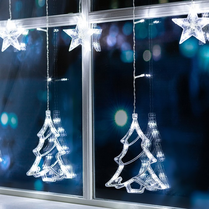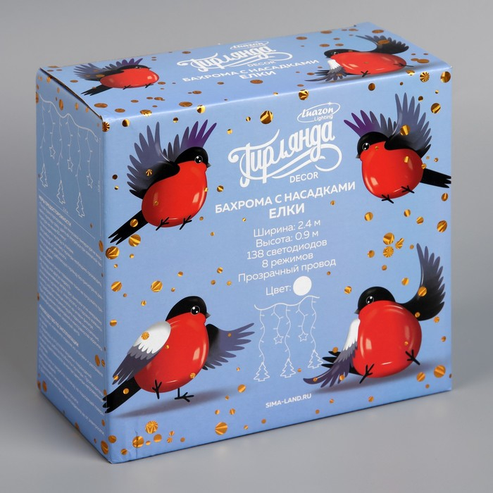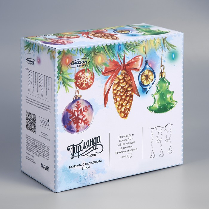 Гирлянда «Бахрома» 2.4 × 0.9 м с насадками «Ёлки», IP20, прозрачная нить, 138 LED, свечение белое, 8 режимов, 220 В