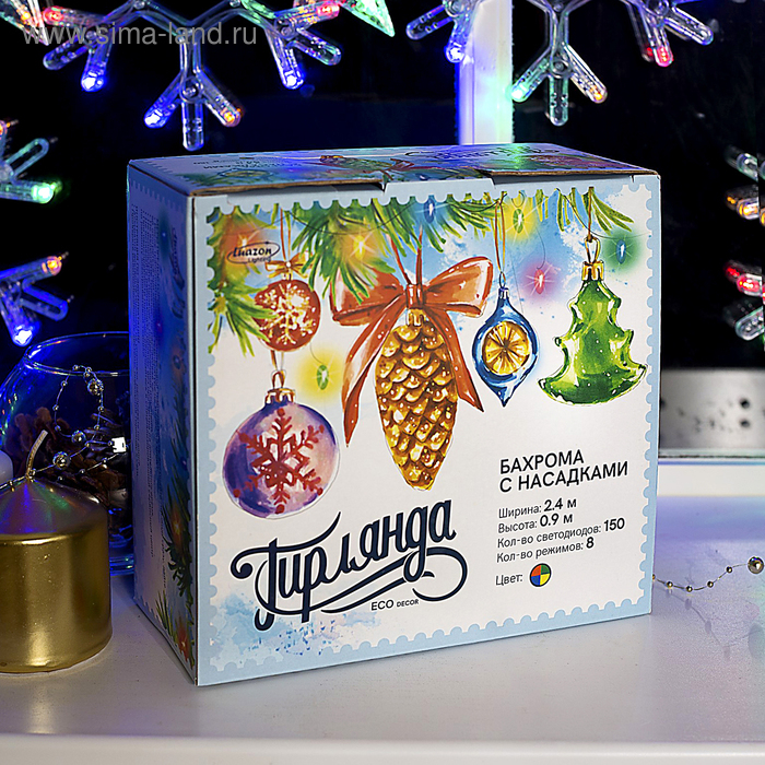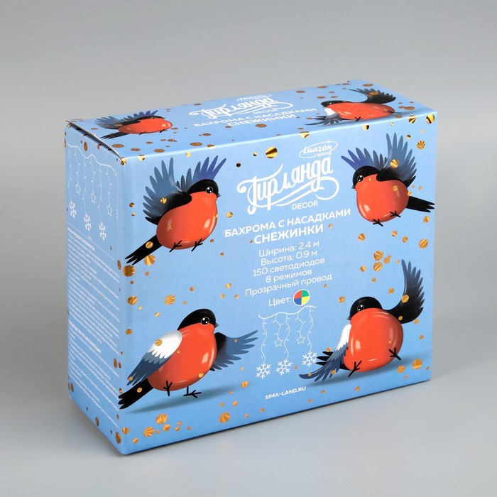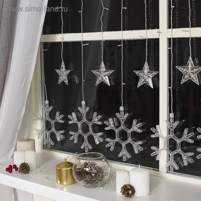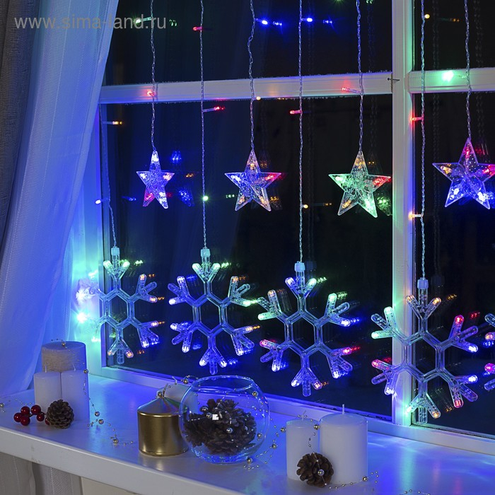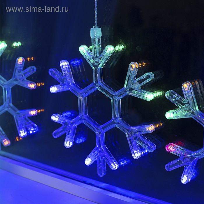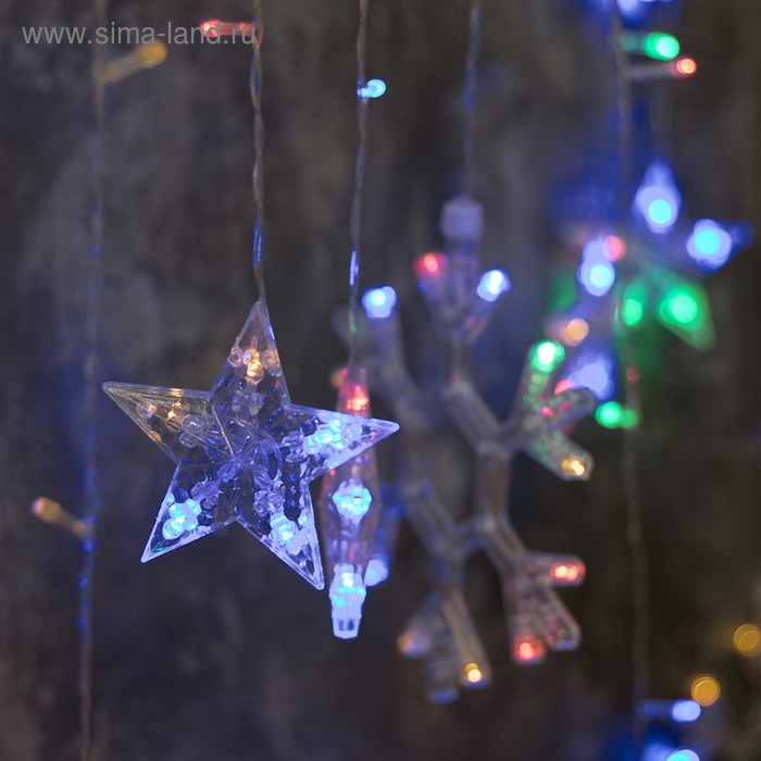 Гирлянда «Бахрома» 2.4 × 0.9 м с насадками «Снежинки», IP20, прозрачная нить, 150 LED, свечение мульти, 8 режимов, 220 В