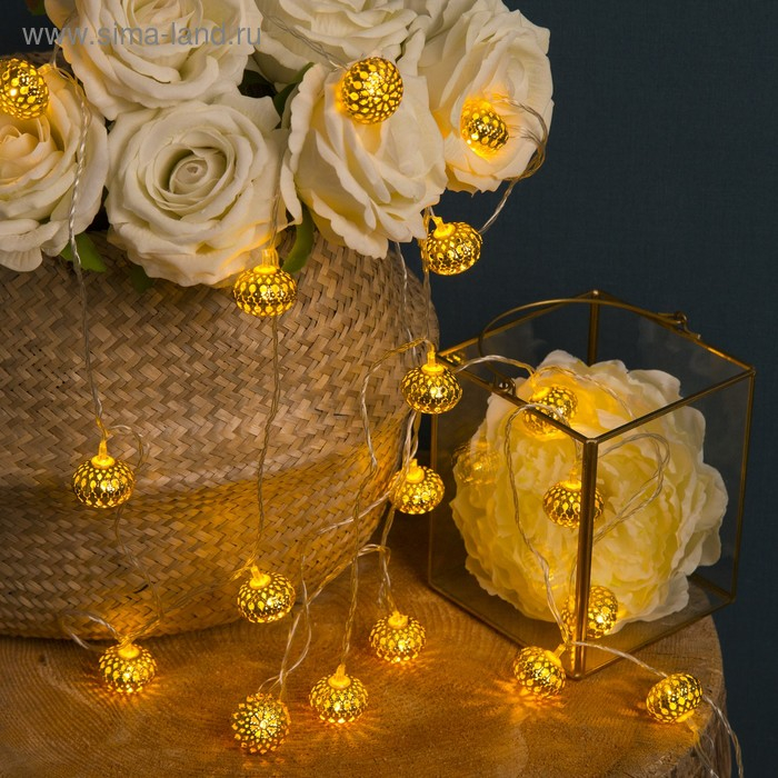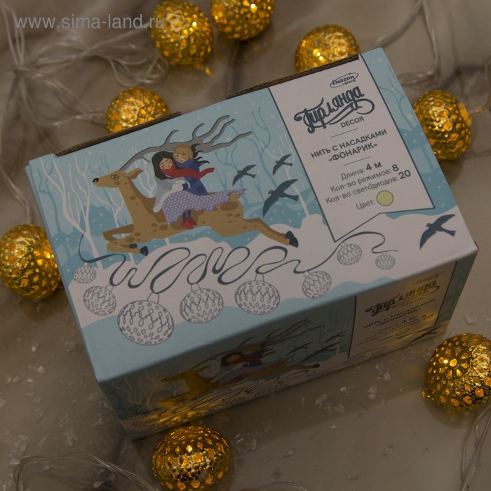 Гирлянда «Нить» 4 м с насадками «Фонарик», IP20, прозрачная нить, 20 LED, свечение тёплое белое, 8 режимов, 220 В