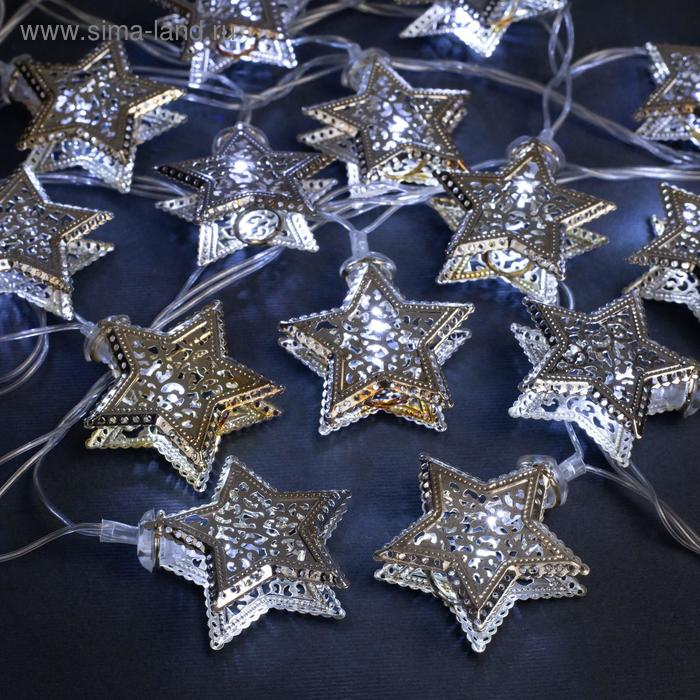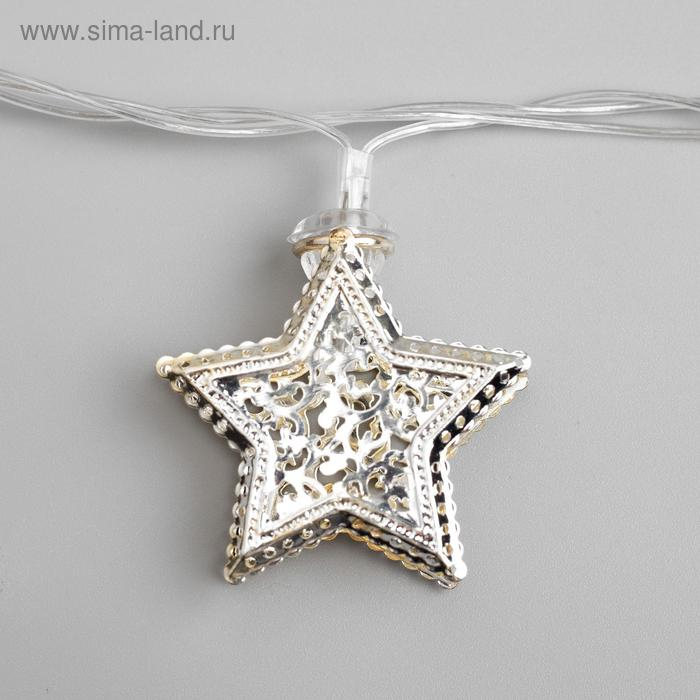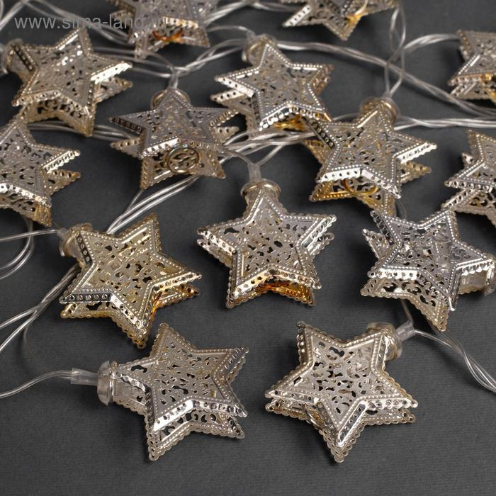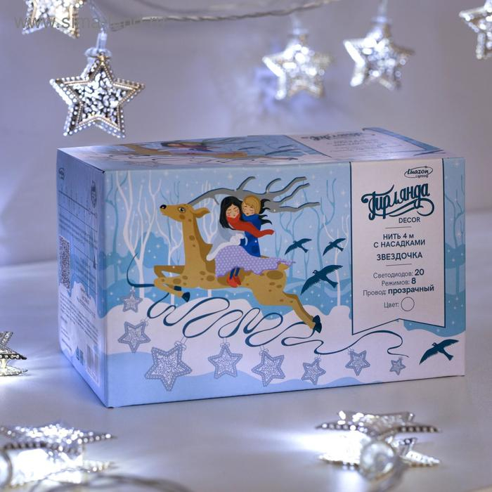 Гирлянда «Нить» 4 м с насадками «Звёздочка», IP20, прозрачная нить, 20 LED, свечение белое, 8 режимов, 220 В