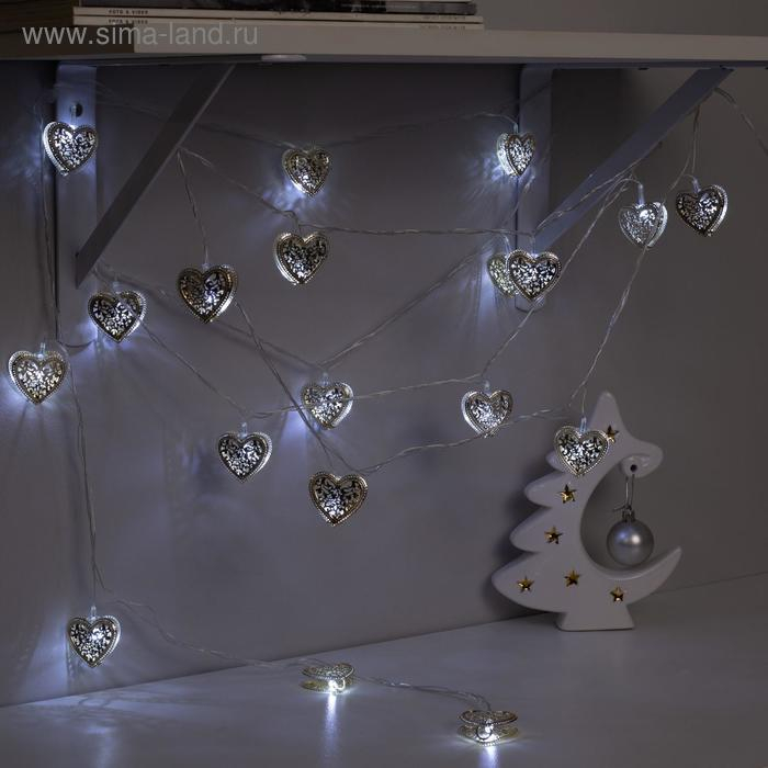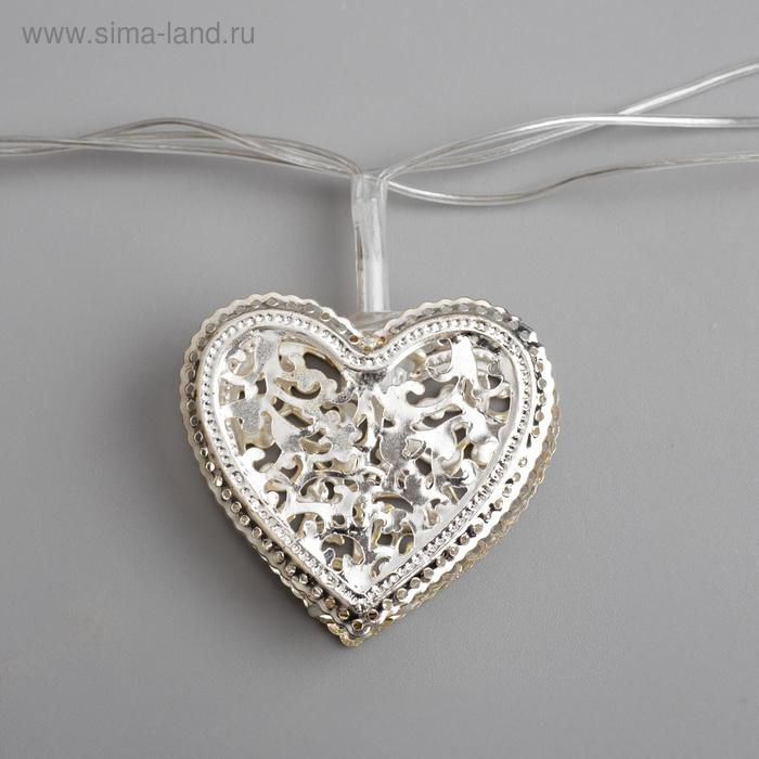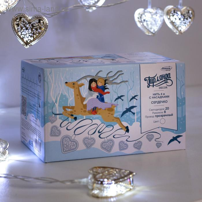 Гирлянда «Нить» 4 м с насадками «Сердечко», IP20, прозрачная нить, 20 LED, свечение белое, 8 режимов, 220 В