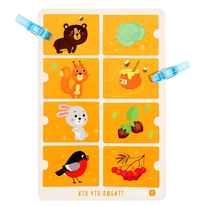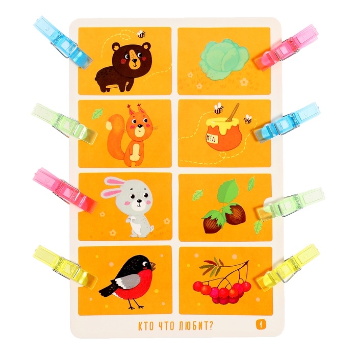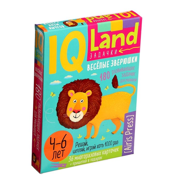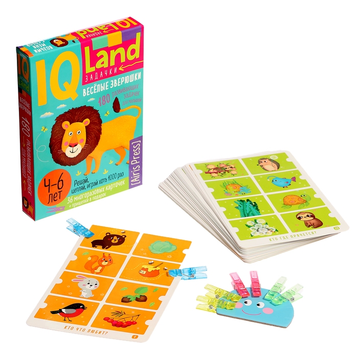 IQ Многоразовые карточки «Весёлые зверушки», с прищепками, 4+