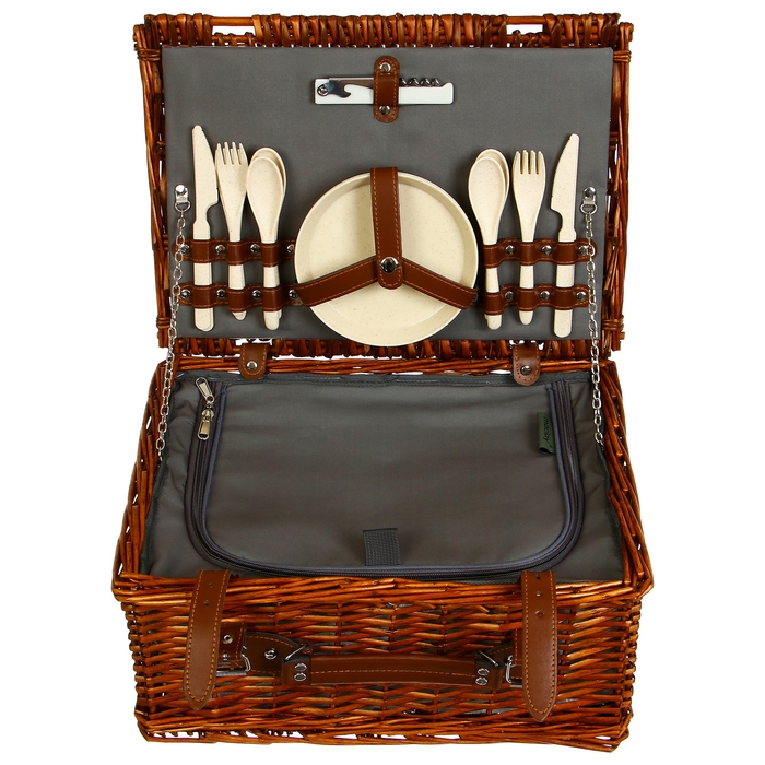Корзина для пикника с крышкой maclay, плетёная, 4 персоны, лоза
