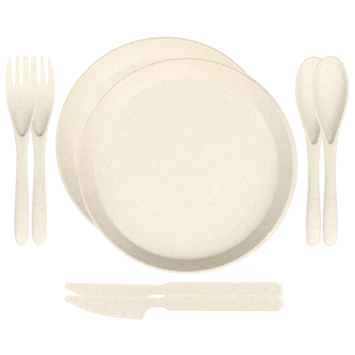 - Универсальный набор многоразовой посуды: ножи, вилки, ложки и тарелки.