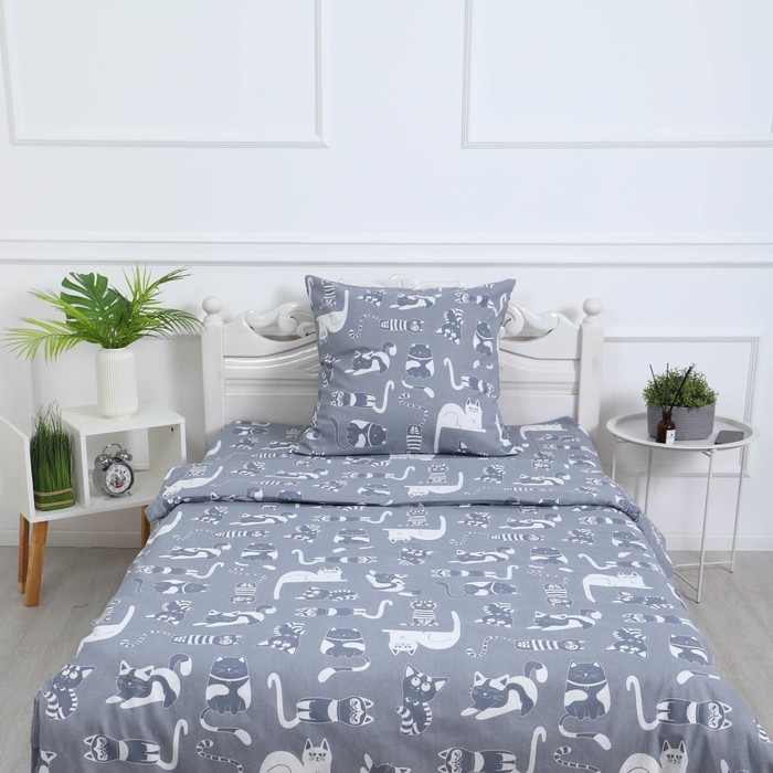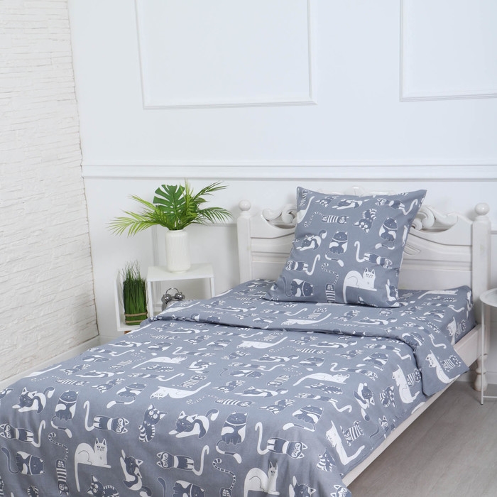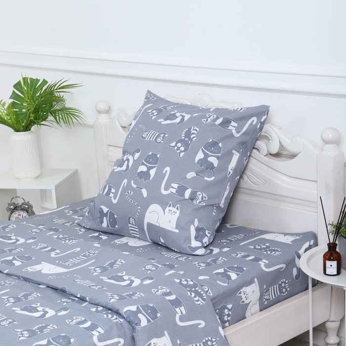 Комплект постельного белья 1,5 сп Кошкин дом т-сер 150х210 см, 150х210 см, 70х70 см, бязь, 120г/м, хл100%
