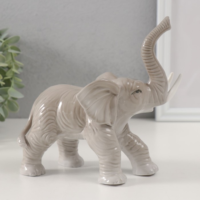 Сувенир керамика "Серый слон с хоботом вверх" 8х16х16,5 см