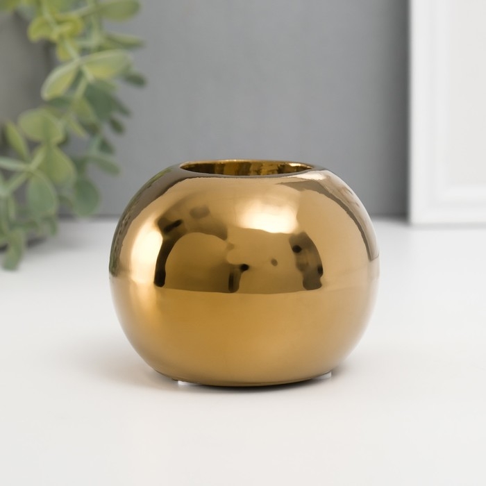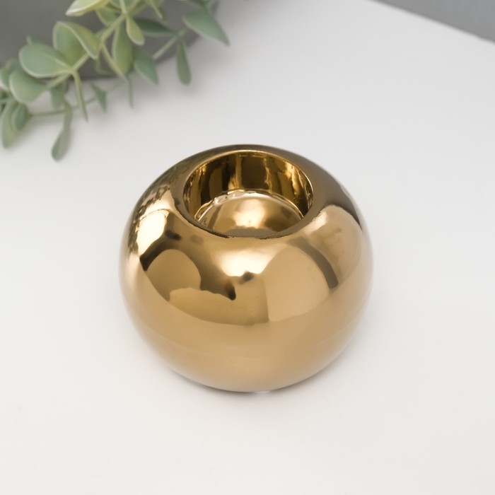 Подсвечник керамика на 1 свечу "Шар" d=3,5 см золото 9,5х9,5х6,5 см