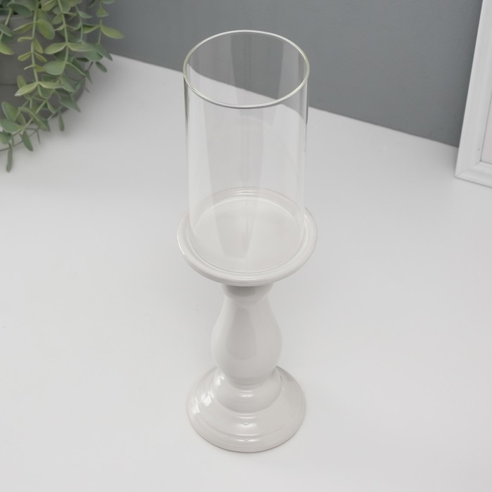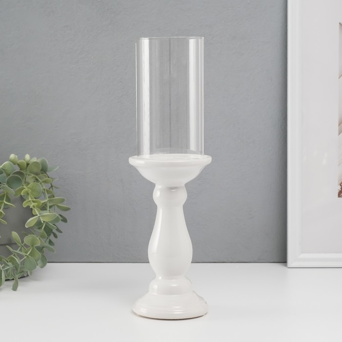 Подсвечник керамика, стекло на 1 свечу "Магистр" d=8 см белый 9,5х9,5х32 см
