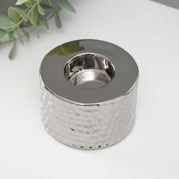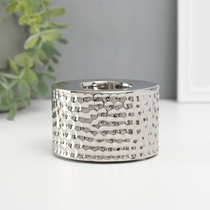Подсвечник керамика на 1 свечу "Капли дождя на песке" d=4 см серебро 9х9х6 см