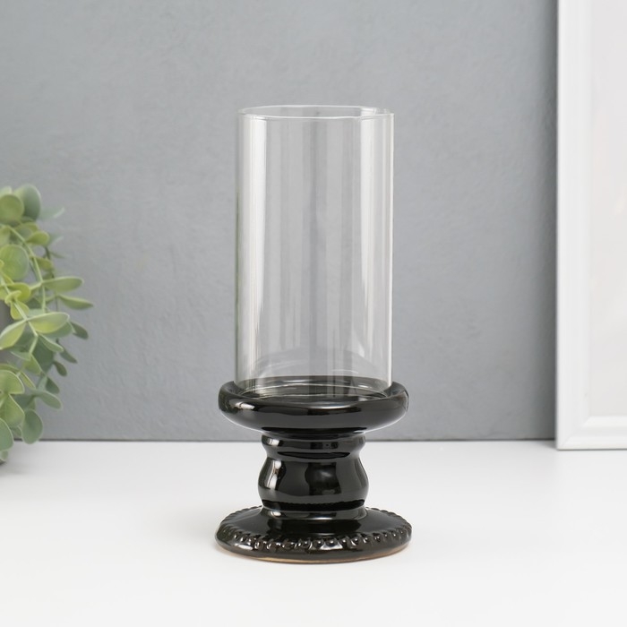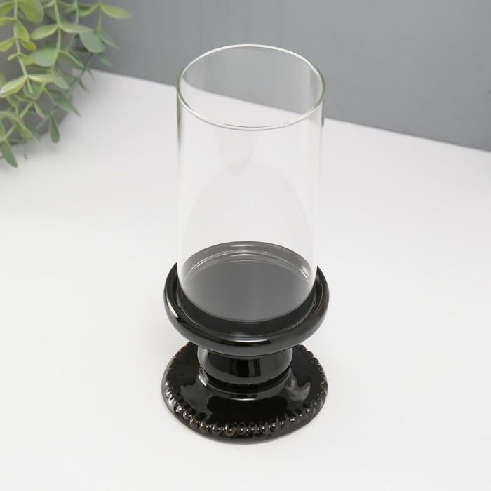Подсвечник керамика, стекло на 1 свечу "Веллис" d=8 см чёрный 10х10х21,5 см
