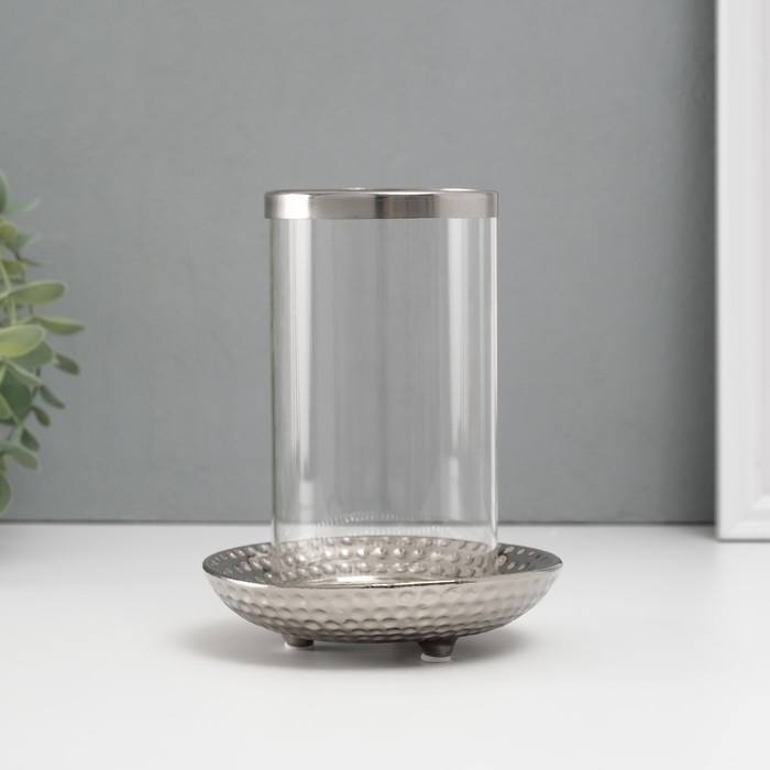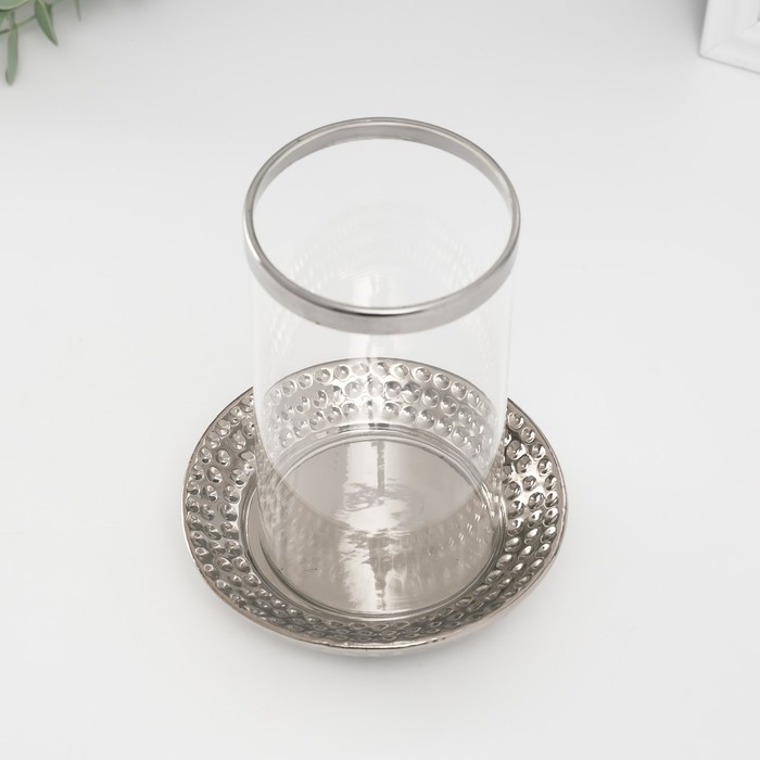 Подсвечник керамика, стекло на 1 свечу "Моро" d=8 см серебро 12х12х17,2 см