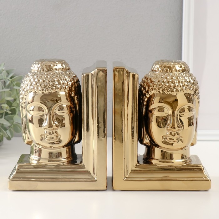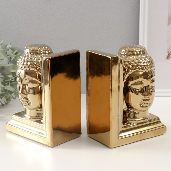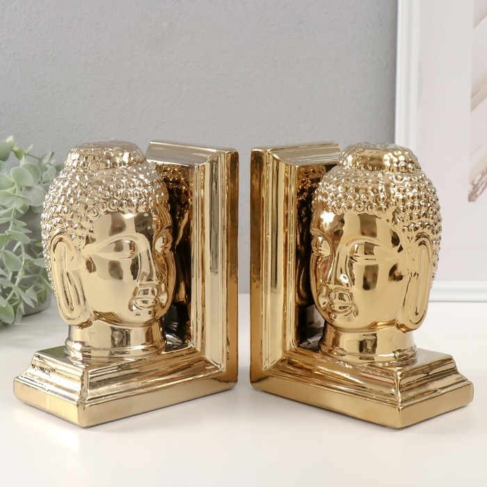 Держатели для книг керамика "Голова Будды" набор 2 шт золото 14,5х10х18,5 см