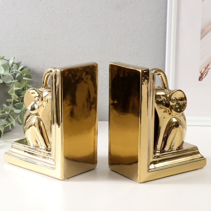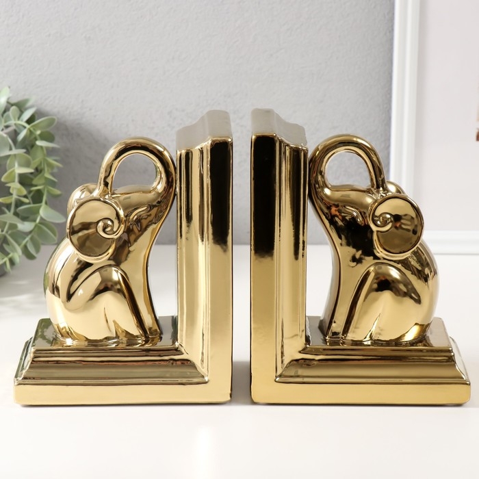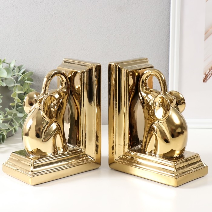 Держатели для книг керамика "Слоны" набор 2 шт золото 14,5х9х18 см