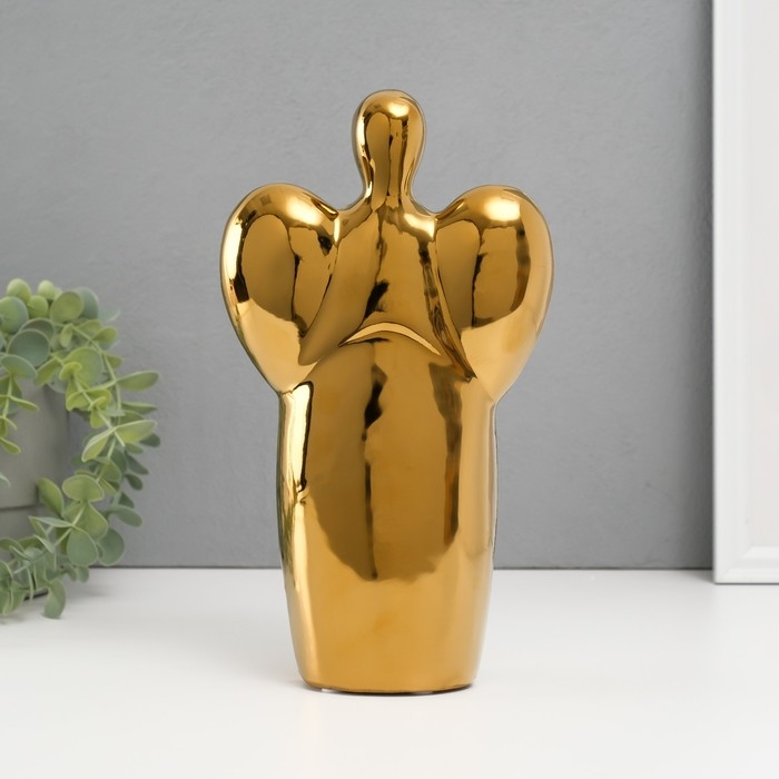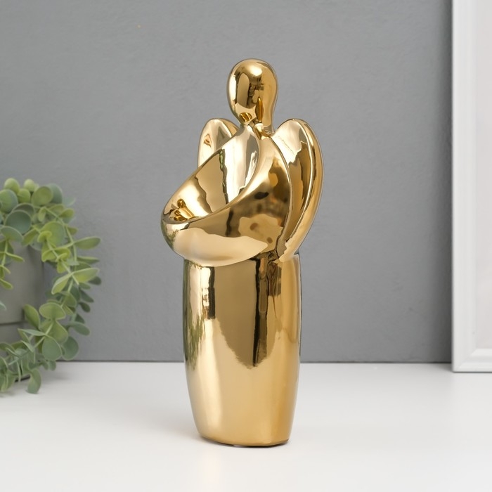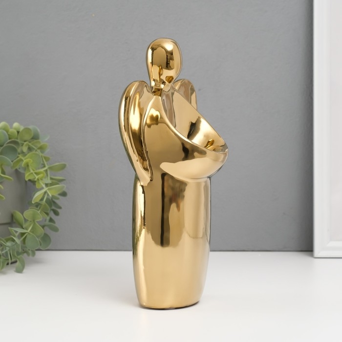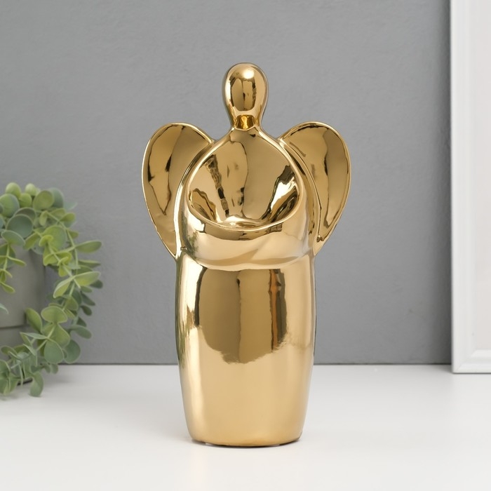 Подсвечник керамика на 1 свечу "Ангел" d=3,5 см золото 14х9,5х25 см