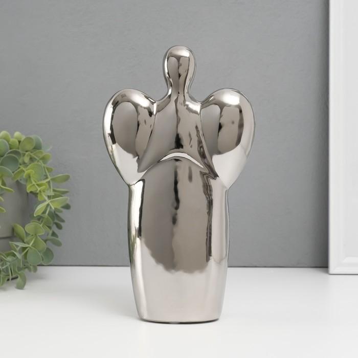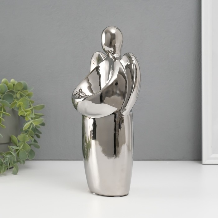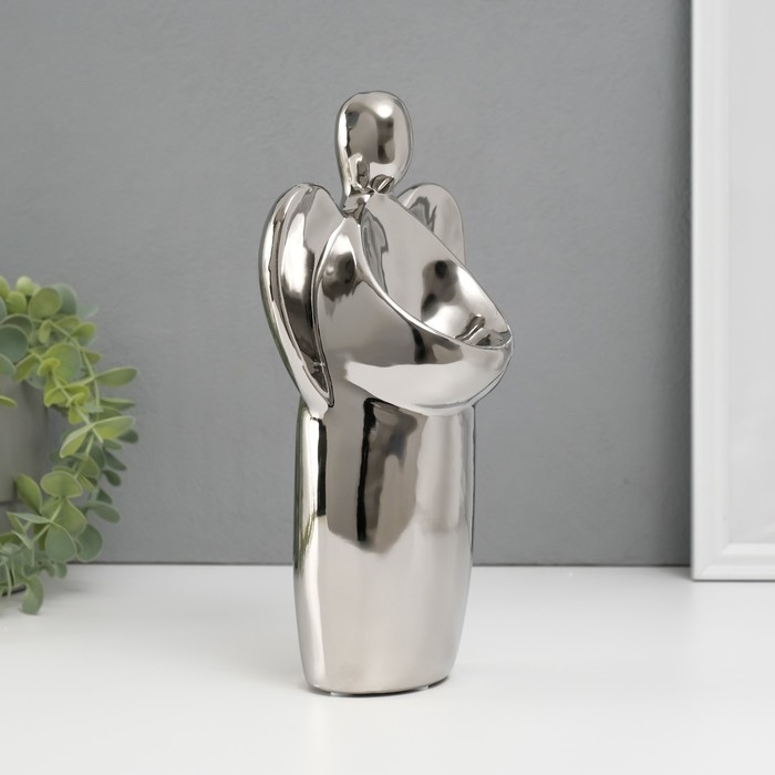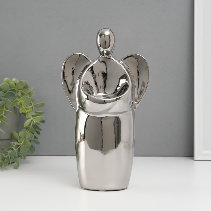 Подсвечник керамика на 1 свечу "Ангел" d=3,5 см серебро 14х9,5х25 см