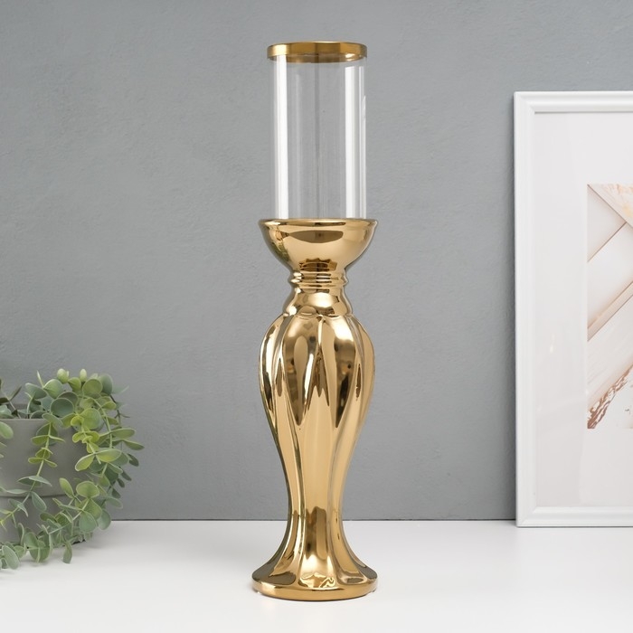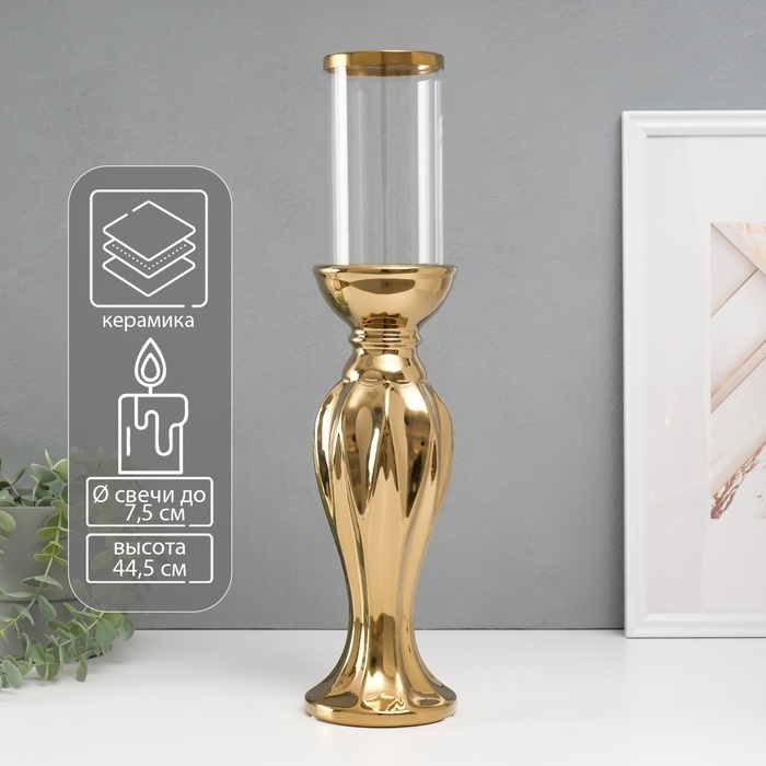 Подсвечник керамика, стекло на 1 свечу "Версаль" d=7,5 см золото 10,5х10,5х44,5 см