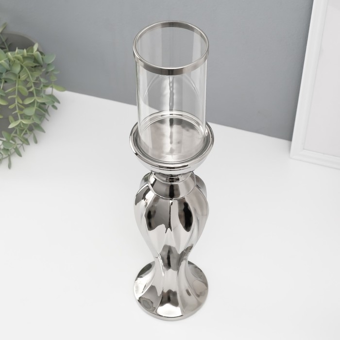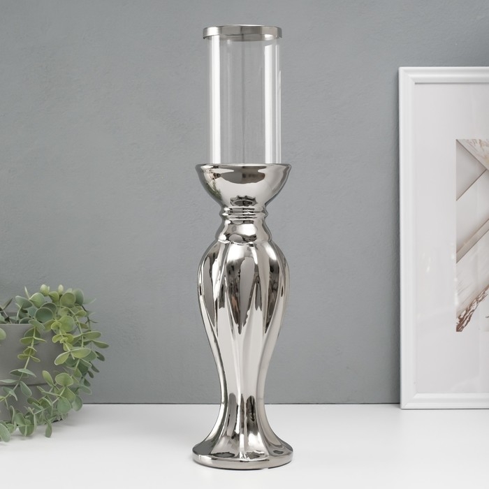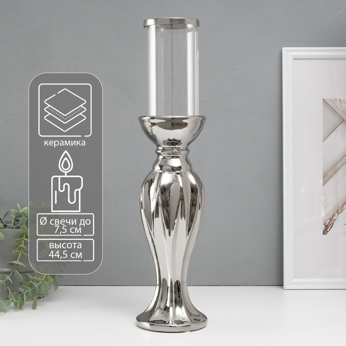 Подсвечник керамика, стекло на 1 свечу "Версаль" d=7,5 см серебро 10,5х10,5х44,5 см
