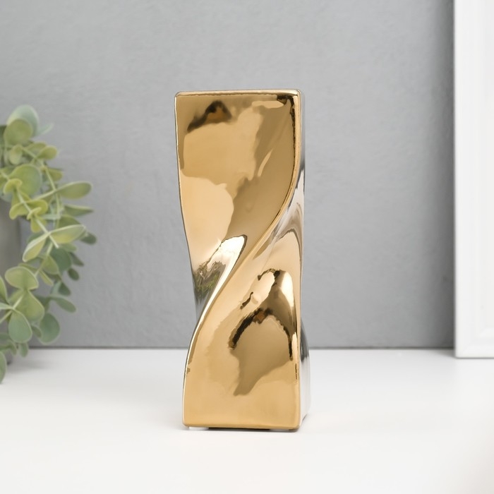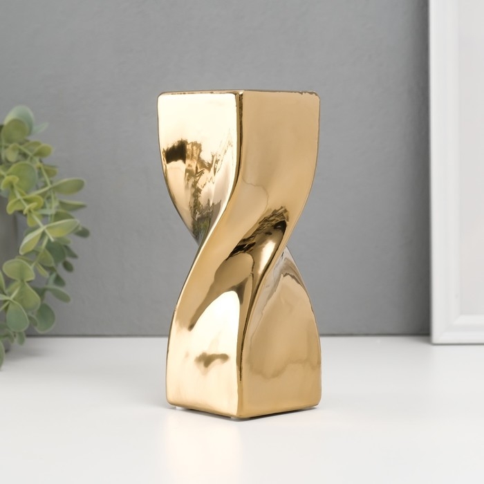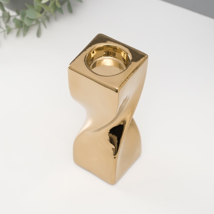 Подсвечник керамика на 1 свечу "Изгиб" d=3,5 см золото 6,5х6,5х17,5 см