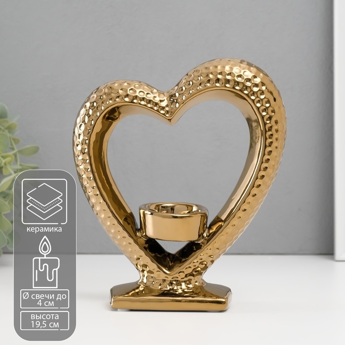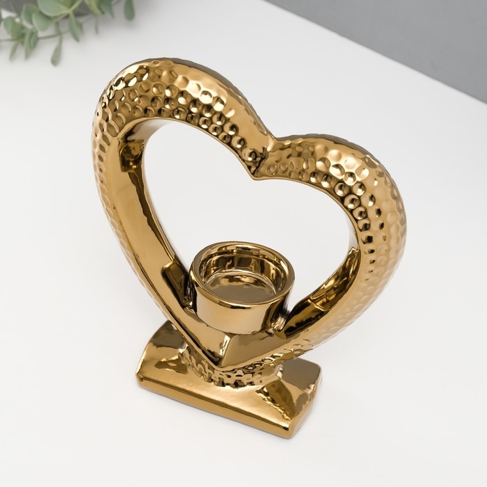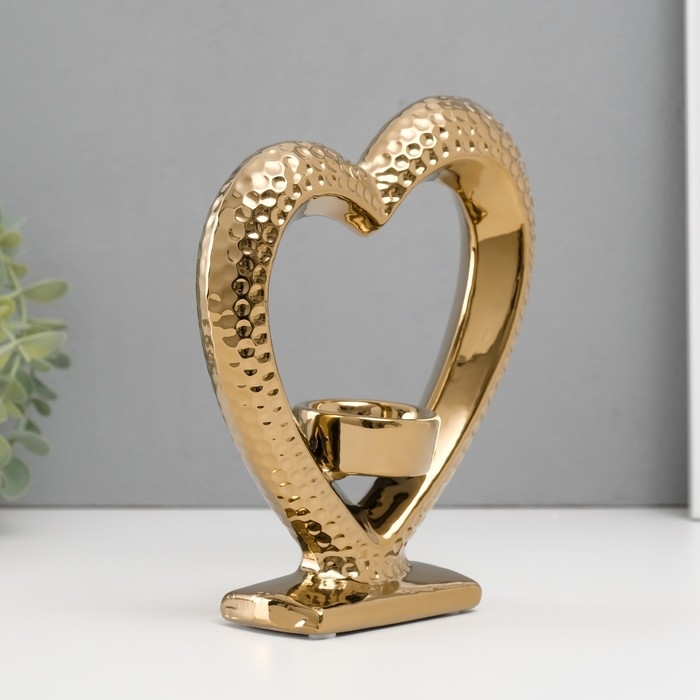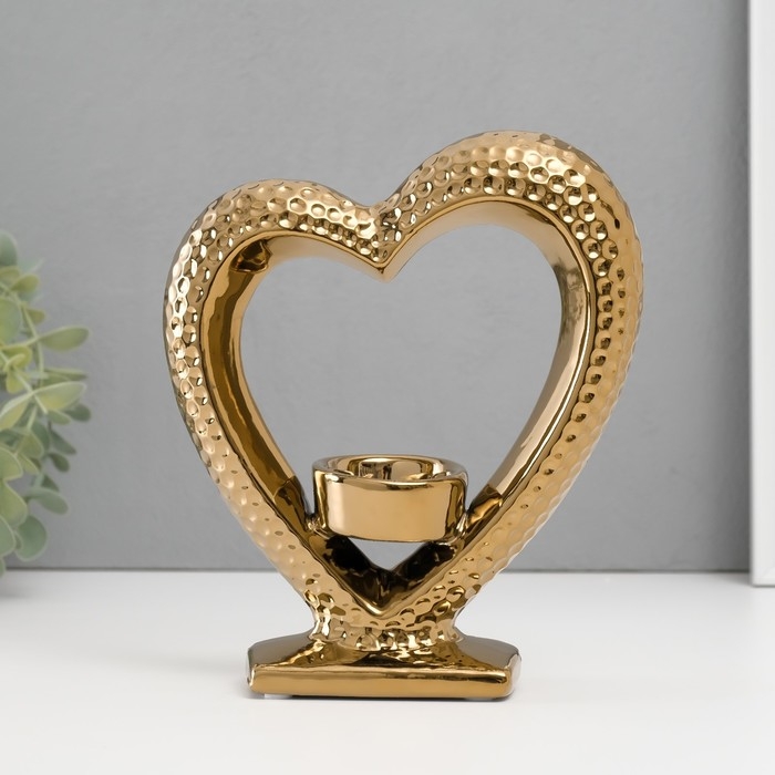 Подсвечник керамика на 1 свечу "Сердце на подставке" d=4 см золото 17х5,5х19,5 см