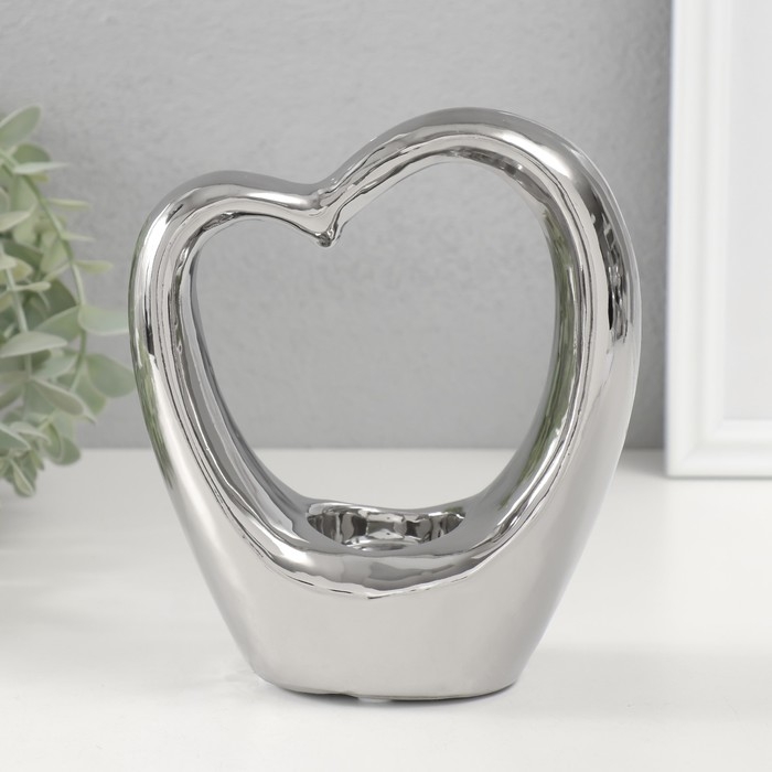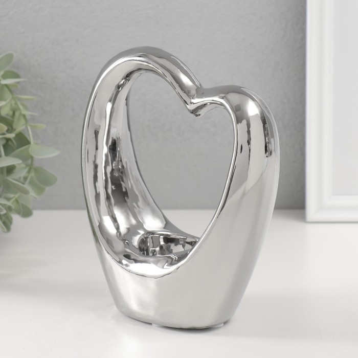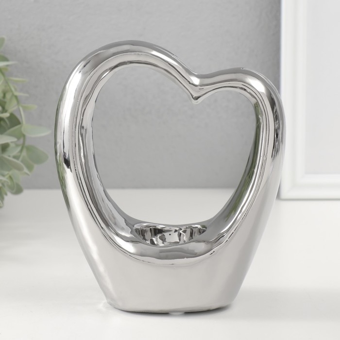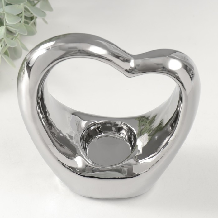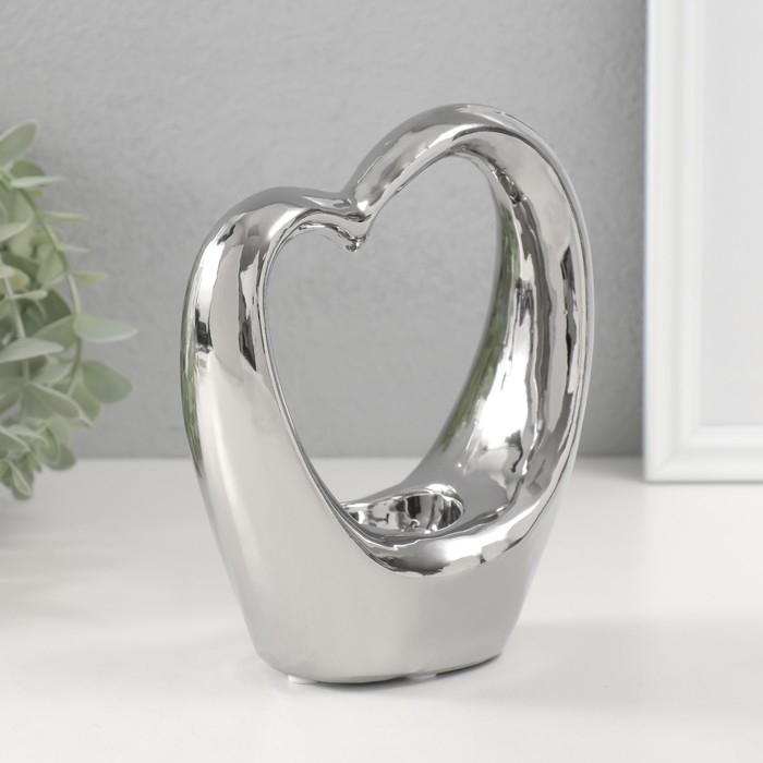 Подсвечник керамика на 1 свечу "Сердце" d=4 см серебро 14,5х6х17 см